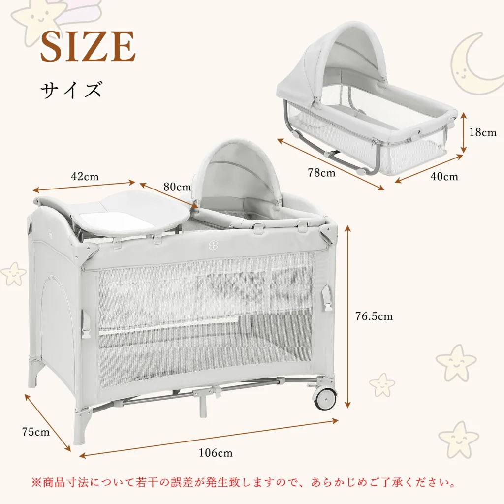 むしろ、一般的なミニベッドよりも少し広めの設計なので、赤ちゃんがゆったり過ごせるメリットの方が大きいです。